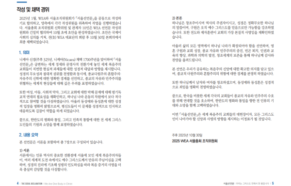 “2025 WEA 서울선언문, 복음주의·개혁주의 신앙 위배: 신학적 타락을 감추고 구호와 사회연합으로 전락한 선언”