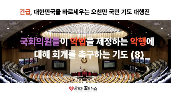 - 국회의원들이 악법을 제정하는 악행에 대해 회개를 촉구하는 기도 8-